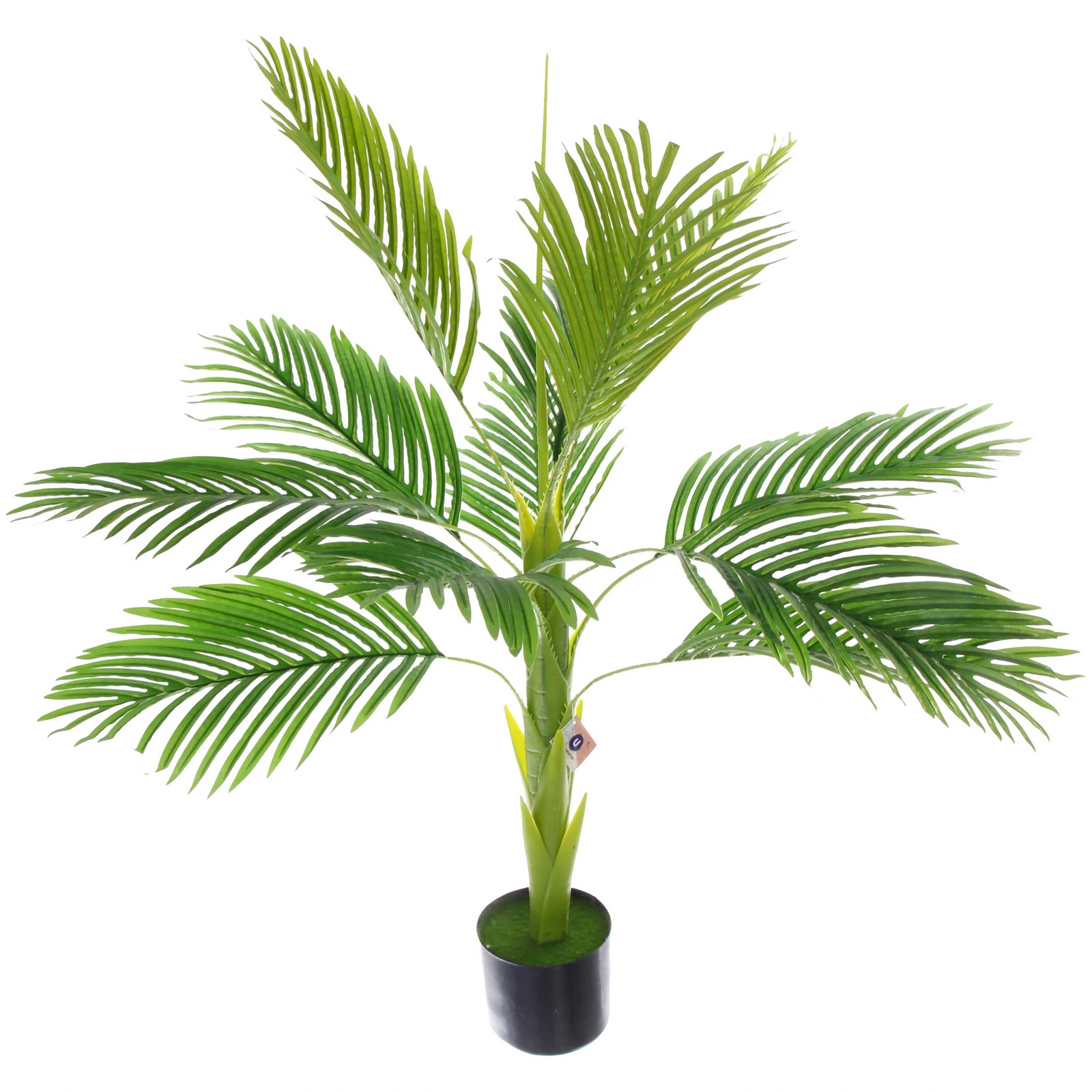 Пальма поставляется в готовом виде, установленной в стильный цилиндрический горшок чёрного цвета. Высота растения вместе с горшком составляет 110 см. Листья и ствол изготовлены из пластика, что обеспечивает прочность и устойчивость формы. Горшок наполнен декоративным грунтом зелёного цвета для завершённого внешнего вида. Это готовое к использованию интерьерное решение, которое не потребует от вас дополнительных усилий.