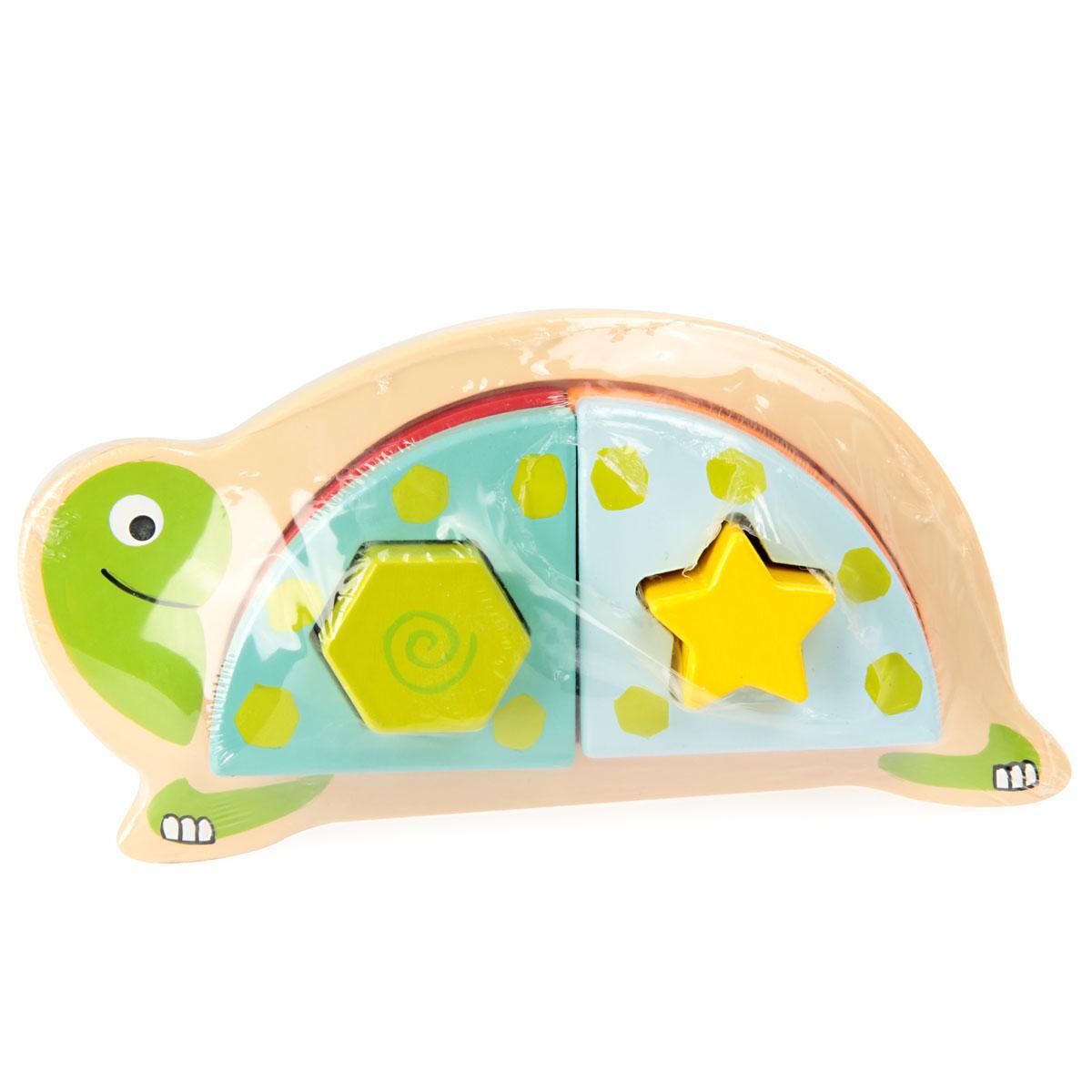 Пазл деревянный "Черепашка" для развития моторики, 21х11х4 см, цвета: бежевый, зеленый, голубой
