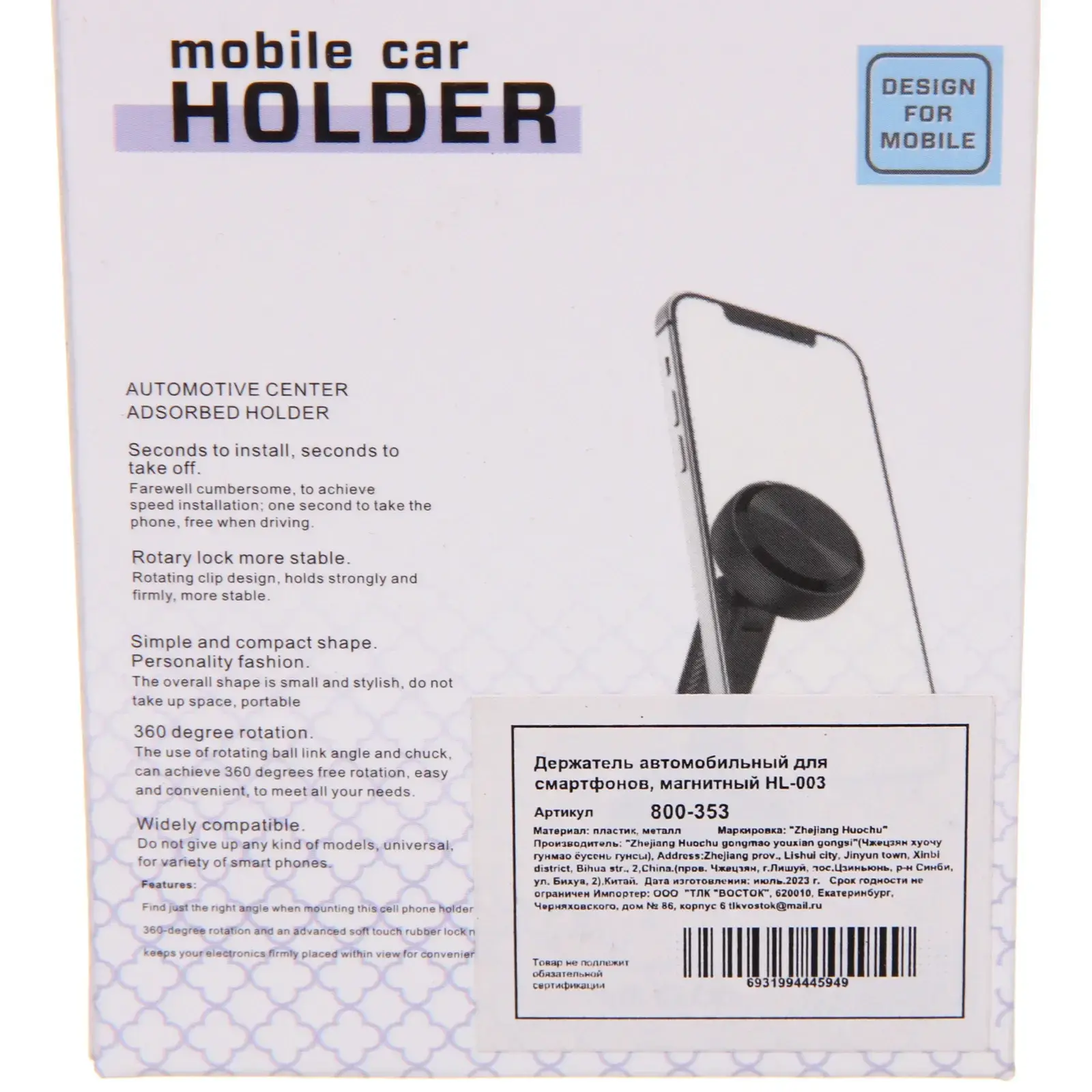 Держатель HL-003 выполнен из качественных материалов — металла и пластика, что гарантирует его долговечность и надежность. Его компактный и стильный дизайн впишется в интерьер любого автомобиля. Кроме того, магнитная поверхность позволяет быстро устанавливать и снимать телефон, что экономит ваше время и усилия.