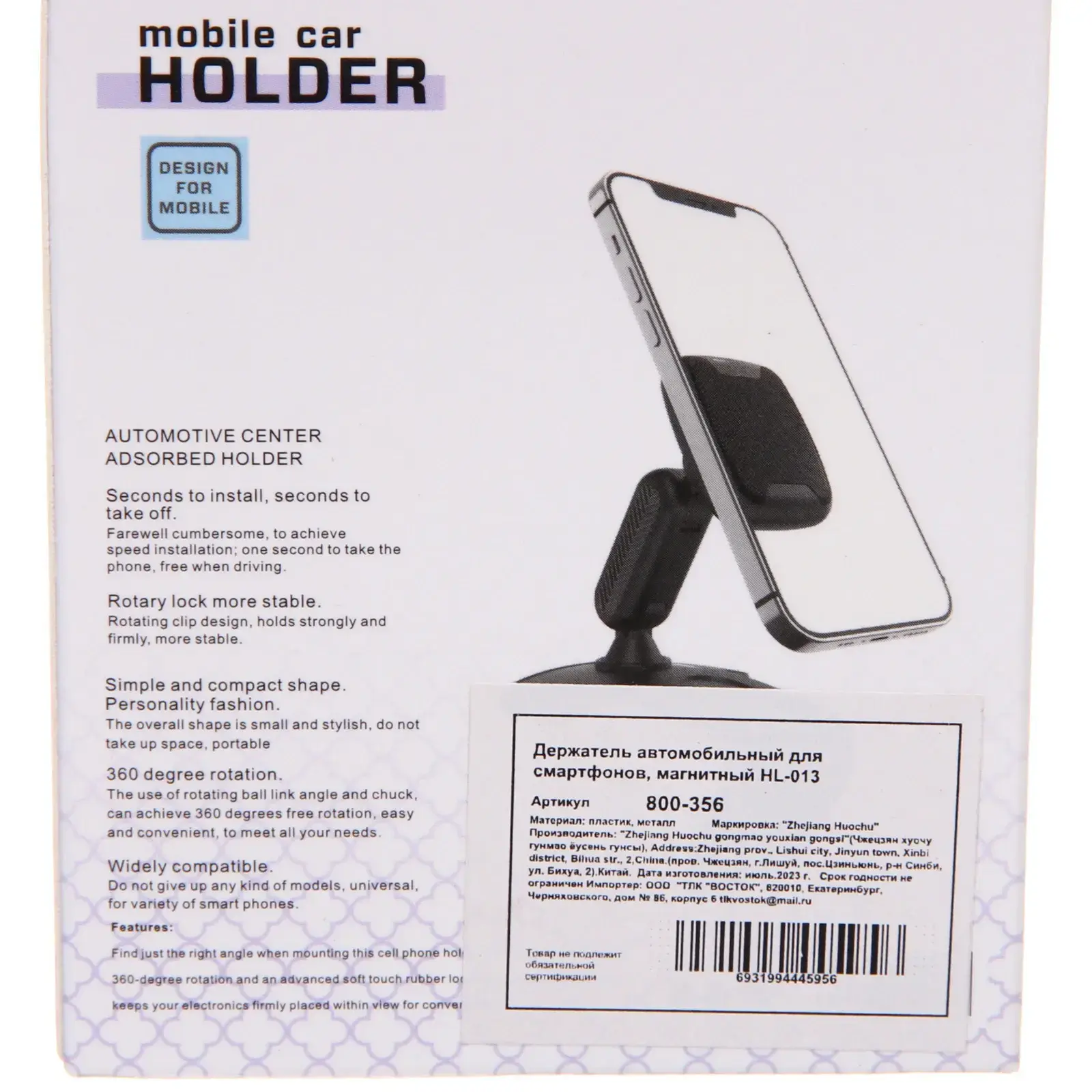 Держатель HL-013 предназначен для крепления на различных поверхностях, включая вентиляционные решетки и панели автомобилей. Его магнитная конструкция позволяет надежно фиксировать устройство, а возможность поворота на 360° обеспечивает удобный доступ к экрану в любом положении. Установка и снятие смартфона занимают всего несколько секунд, что делает его идеальным выбором для активных пользователей.