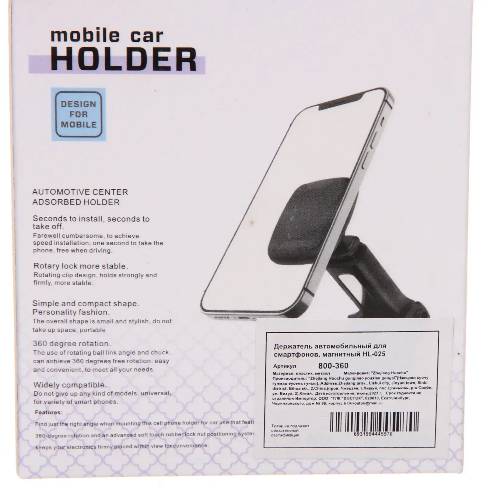Не упустите возможность сделать ваши поездки более комфортными и безопасными с держателем автомобильным HL-025!