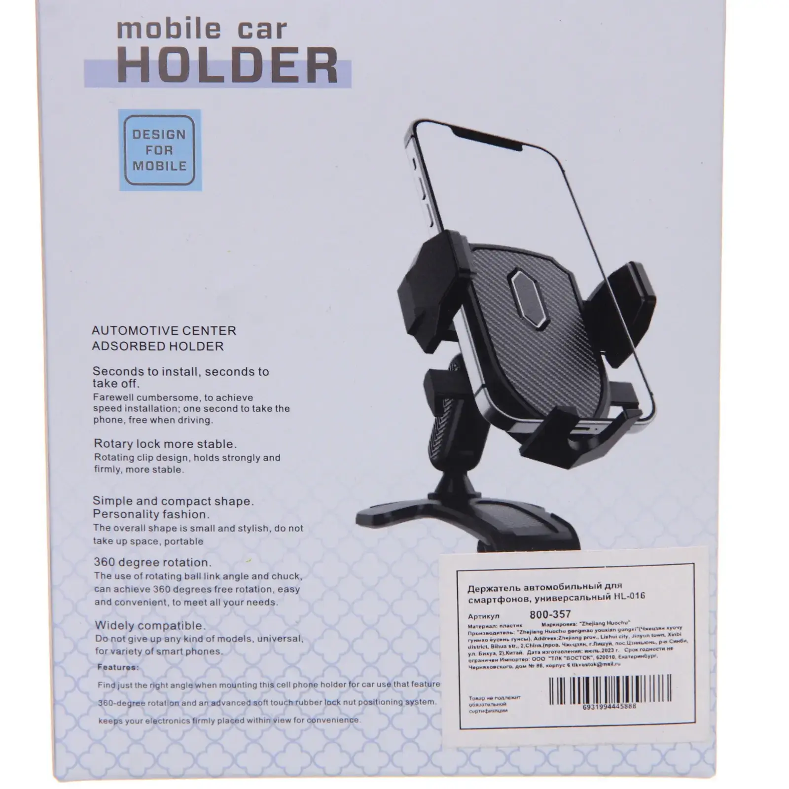 Не упустите возможность сделать ваши поездки более комфортными и безопасными с держателем HL-016. Заказывайте прямо сейчас и наслаждайтесь удобством использования вашего смартфона в автомобиле!