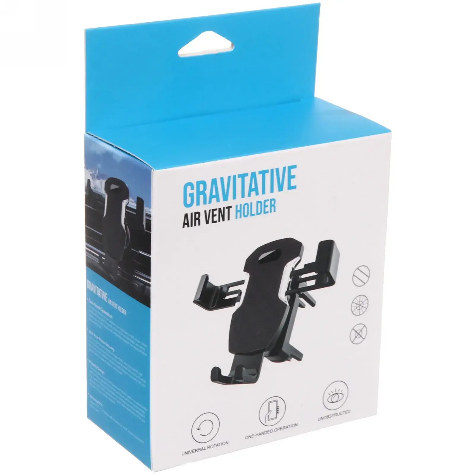 Держатель предназначен для установки на вентиляционную решетку автомобиля и подходит для большинства смартфонов. Его универсальный дизайн позволяет использовать его с устройствами толщиной до 0,4 дюйма, включая чехлы. Удобный механизм крепления обеспечивает надежную фиксацию, а возможность поворота на 360° позволяет настроить угол наклона для максимального комфорта.