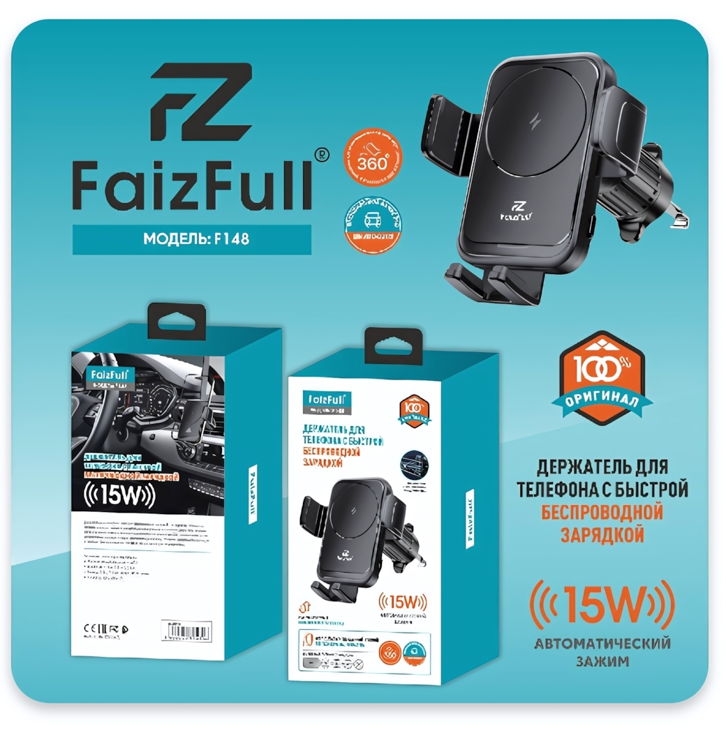 Держатель автомобильный FaizFull F148 с беспроводной зарядкой