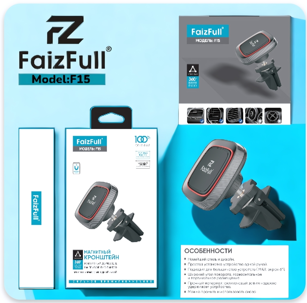 Магнитный автомобильный держатель FAIZFULL F15 обеспечивает безопасное крепление смартфона и мгновенный доступ к навигации. Удобная фиксация и вращение на 360° позволяют выбрать оптимальный угол обзора без отрыва от дороги.