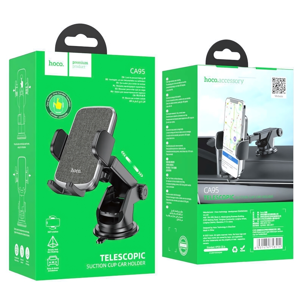 Автомобильный держатель HOCO CA95 создан для безопасного использования смартфона во время поездок. Прочная присоска и надежный зажимной механизм гарантируют стабильность устройства даже на сложных участках дороги.
