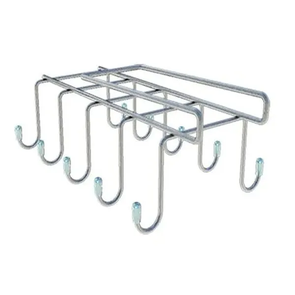 Подвесной держатель для чашек поможет создать комфорт и порядок на вашей кухне. Благодаря компактной металлической конструкции, серийной сетке и 10 крючкам вы сможете удобно разместить любимые чашки, освобождая рабочие поверхности и экономя место. Элегантный серебристый цвет, краш. хром и гладкая зеркальная поверхность придают изделию современный вид, гармонично вписываясь в любой интерьер. Держатель рассчитан на удобное хранение чашек, кружек и небольших сервизных предметов — идеален для повседневного использования дома.