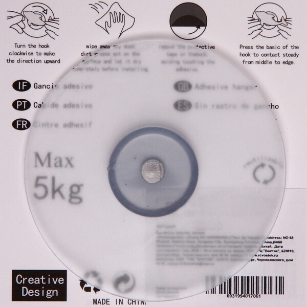 Держатель подходит для использования в ванной, кухне или прихожей. Он может быть использован для полотенец, одежды или других мелких предметов. Просто снимите защитную пленку и приклейте держатель на нужное место — и он готов к использованию!
