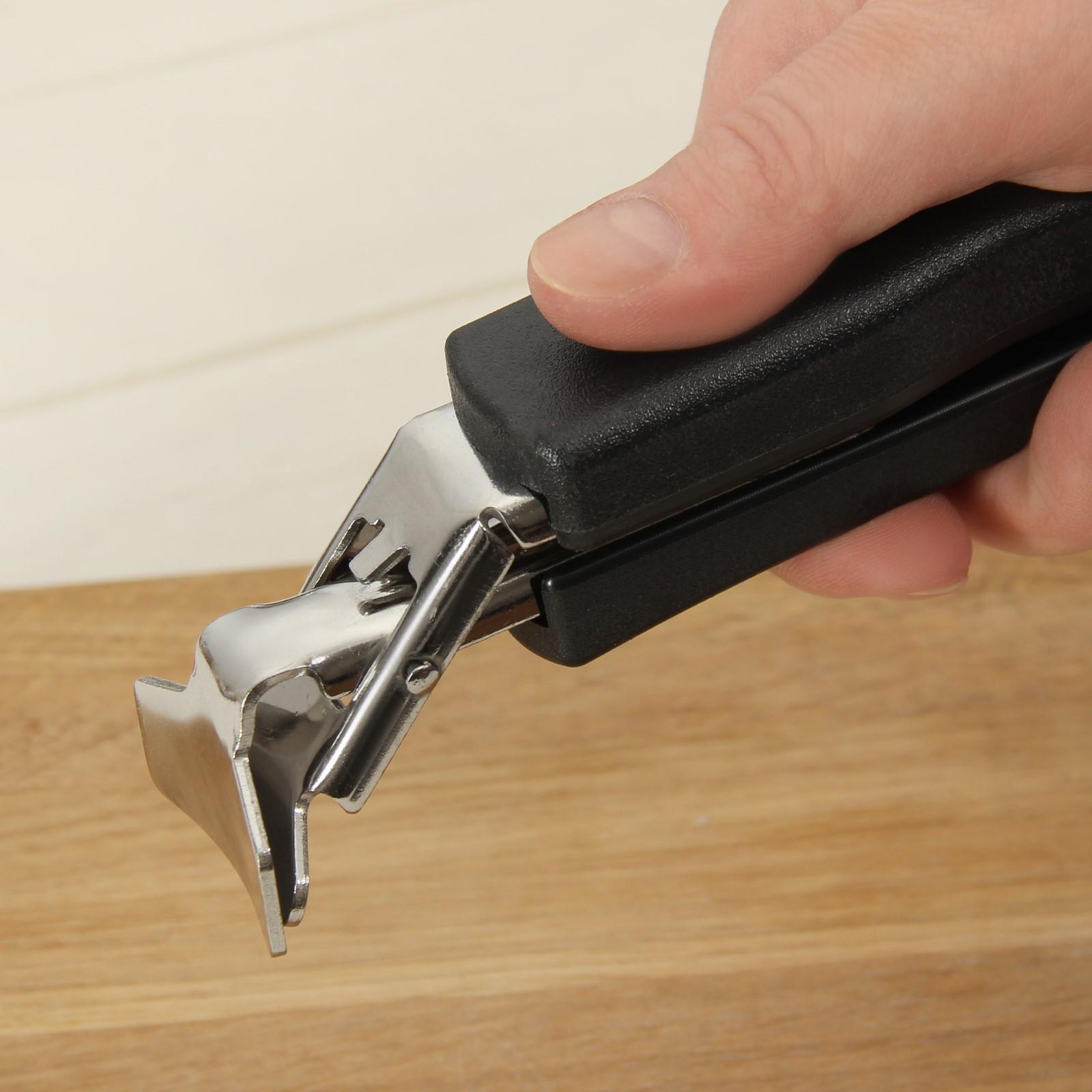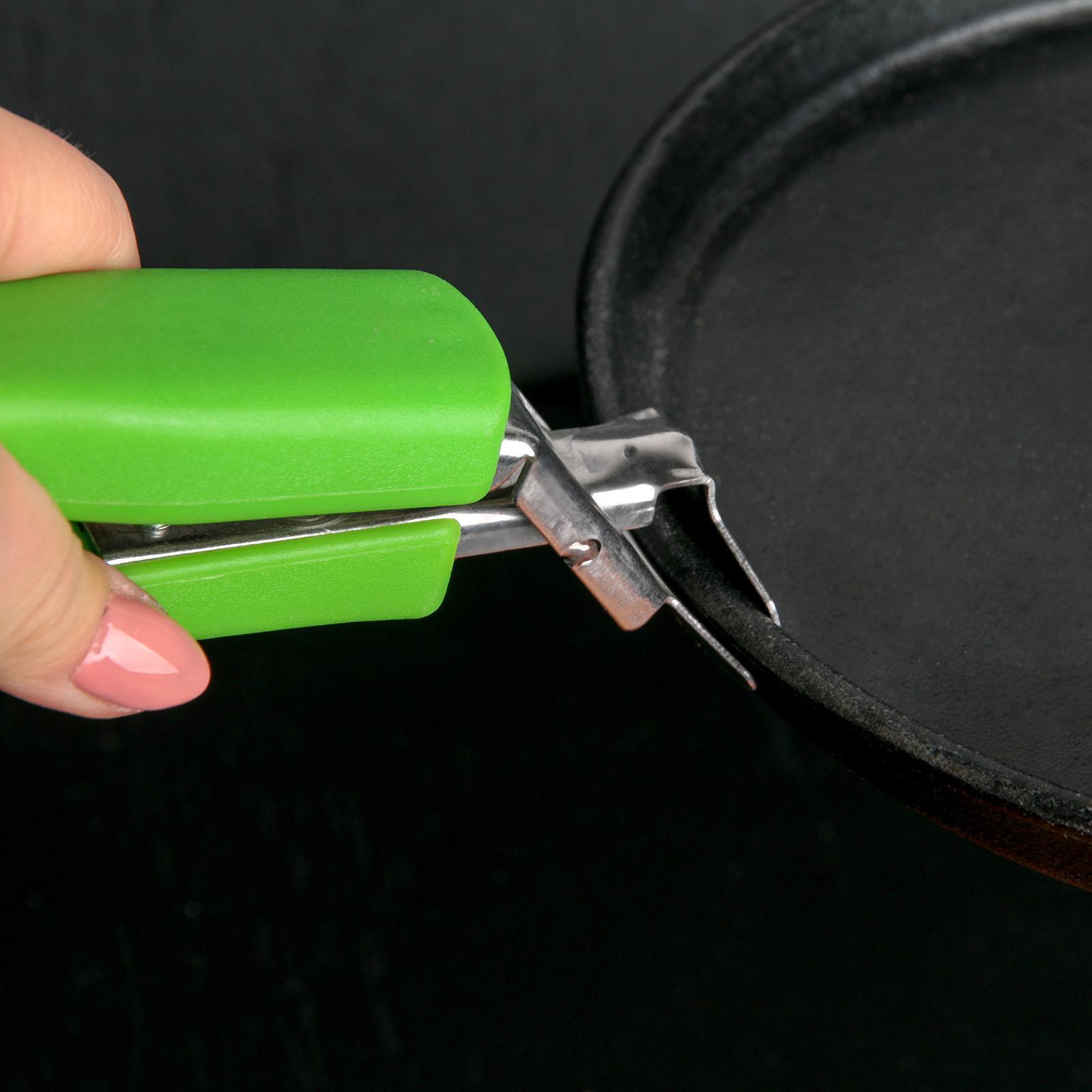 Держатель подходит для захвата сковород с круглой формой, что делает его идеальным для использования с различными кухонными принадлежностями. Он легко открывается и закрывается благодаря пружинному механизму, что позволяет быстро и удобно использовать его в процессе готовки. Этот инструмент идеально подходит как для профессиональных поваров, так и для домашних кулинаров.