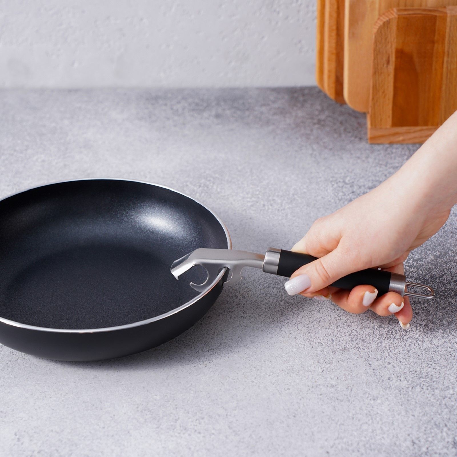 Держатель подходит для всех типов сковород и позволяет легко манипулировать ими во время готовки. Он идеально подходит как для профессиональных поваров, так и для домашних кулинаров. Благодаря своему дизайну, держатель удобно лежит в руке и не скользит, что делает его использование безопасным и комфортным.