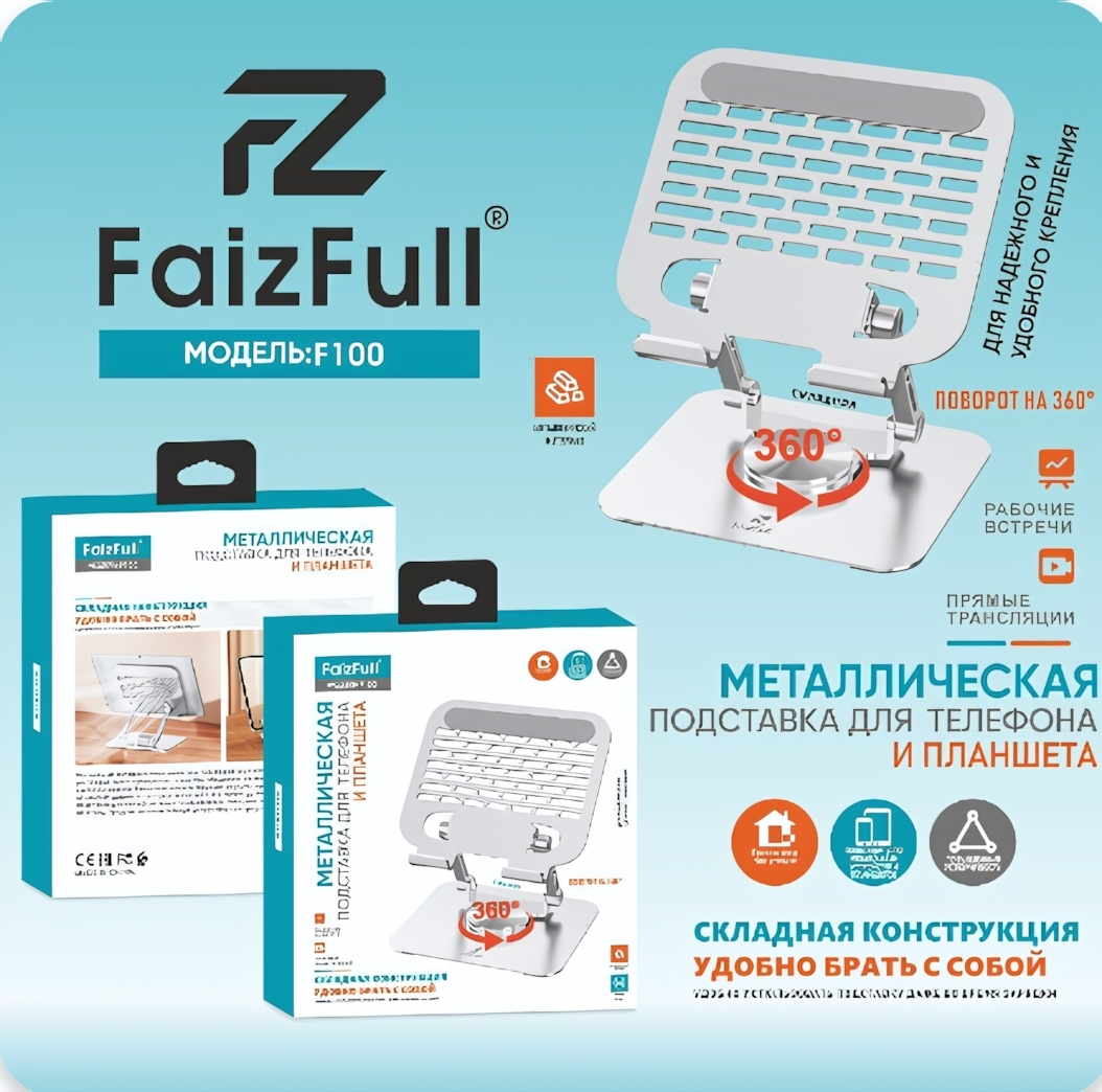 Держатель смартфона настольный FaizFull F100, металл, вращение 360°, для iPhone/Android