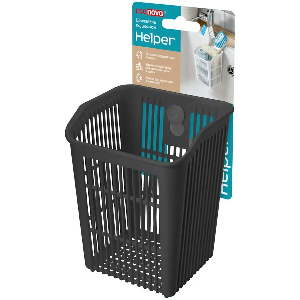 Держатель подвесной для губки и щётки с присоской «HELPER», 9.4x9.5x12.1 см, пластик, тёмно-серый