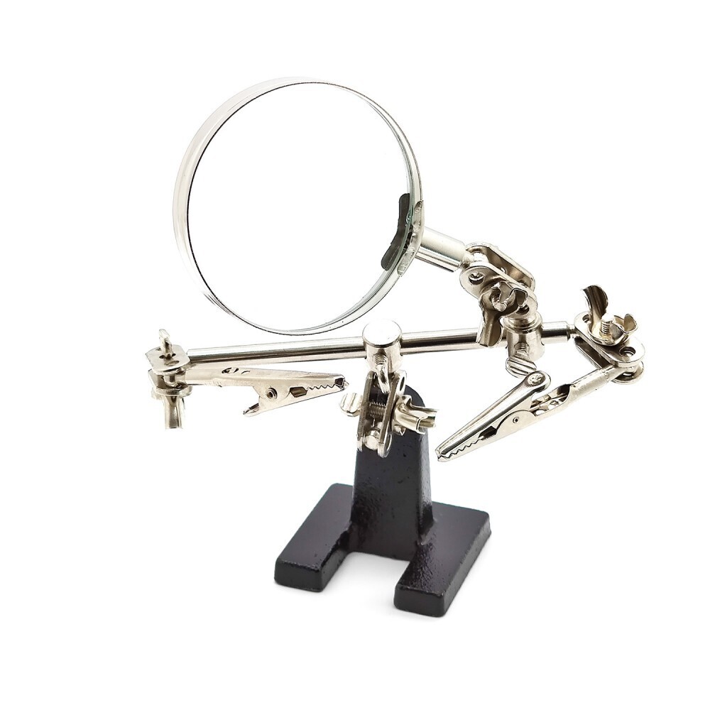 Изделие изготовлено из прочного металла, что гарантирует долговечность использования. Увеличительное стекло диаметром 60 мм с 3-кратным увеличением обеспечивает отличную видимость мельчайших деталей. Устойчивое основание размером 45х45 мм предотвращает опрокидывание во время работы.