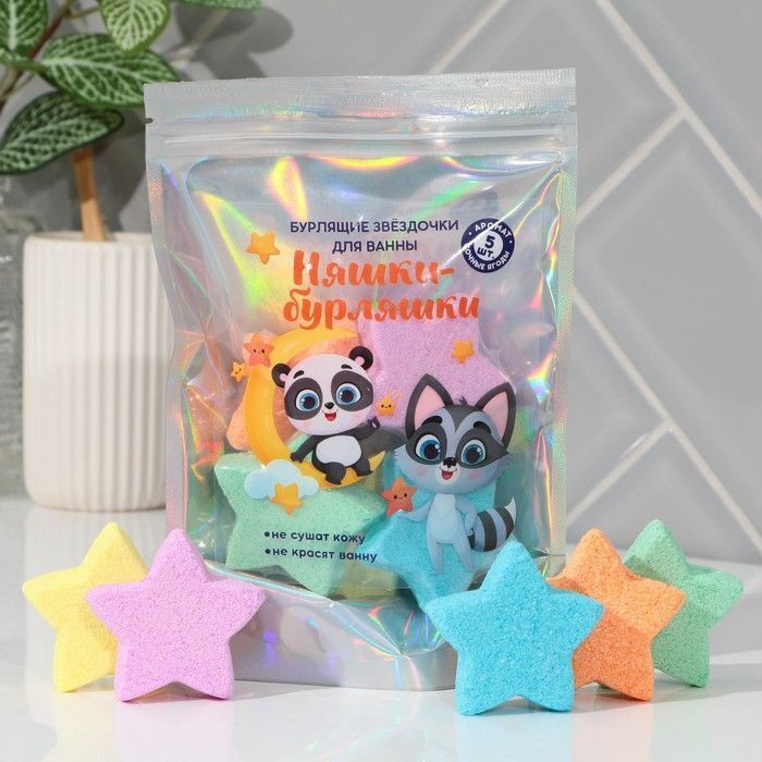 Бомбочки «Няшки-бурляшки» отличаются высоким качеством и безопасным составом. Они не сушат кожу и не оставляют следов на ванне, что делает их идеальными для детской гигиены. Яркие цвета и форма звёздочек привлекут внимание вашего малыша, а ягодный аромат создаст атмосферу радости и веселья.