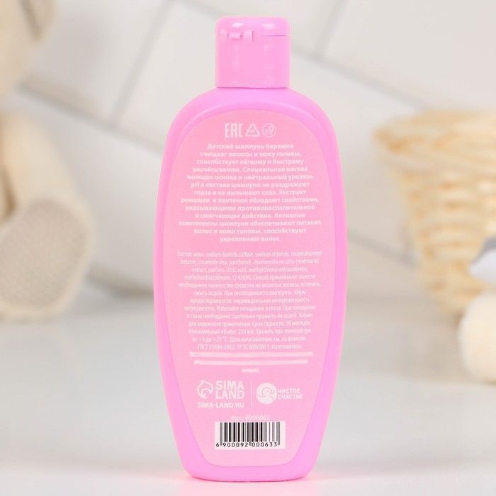 - Яркий дизайн – флакон станет украшением любой ванной комнаты и обязательно понравится малышке.