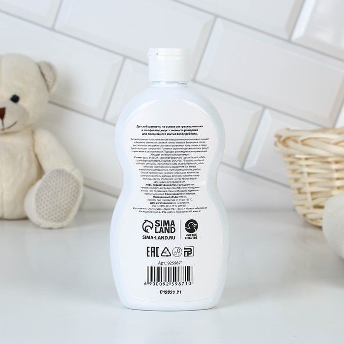 Шампунь упакован в удобный флакон с откидной крышкой, что позволяет легко дозировать необходимое количество средства. Его белый цвет с яркими элементами делает его привлекательным для детей. Храните шампунь в сухом месте при температуре от +5 до +25°C. Срок годности составляет 36 месяцев.