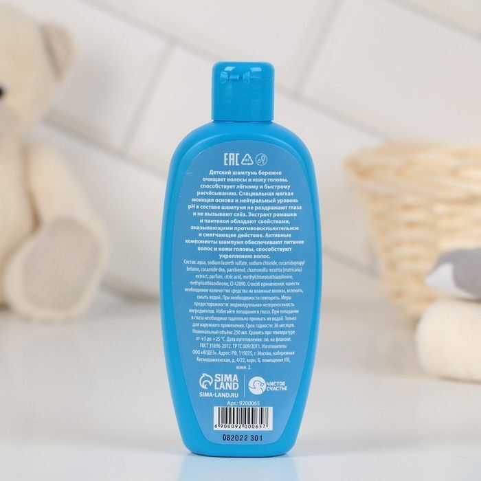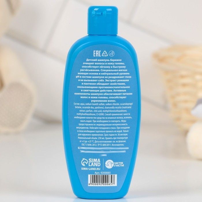 Объем флакона составляет 250 мл, что достаточно для длительного использования. Упаковка выполнена в ярком голубом цвете и оформлена с изображением улыбающегося автомобиля, что привлечет внимание вашего ребенка. Шампунь удобно использовать благодаря крышке с откидным механизмом, что позволяет контролировать количество наносимого средства.