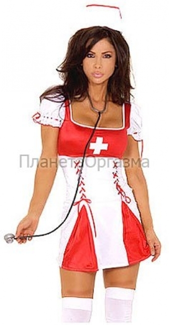 Костюм игровой 'Дежурная медсестра', красный с белым, SM (42-44), платье с ободком и стрингами, полиэстер/эластан