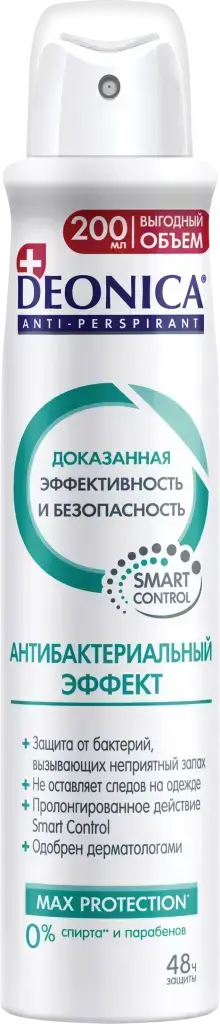 Дезодорант-антиперспирант Deonica "Антибактериальный эффект", аэрозоль 200мл, защита на 48ч