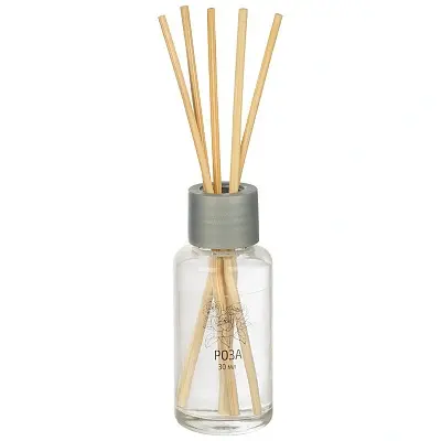 Главное преимущество — длительный эффект ароматизации и эстетичный дизайн, украшение любого помещения. Стеклянный флакон объемом 30 мл легко разместится на полке или столе, а деревянные палочки обеспечивают равномерное распространение запаха без использования огня или электросети.