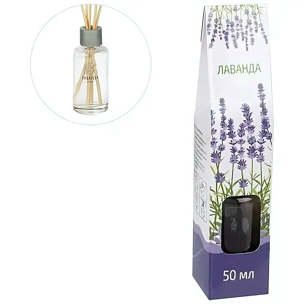 Аромадиффузор «Лаванда» для дома, набор с 5 деревянными палочками, стеклянная бутылочка 50 мл