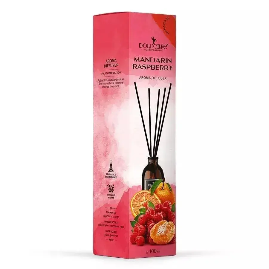 Аромадиффузор "Dolce Life" мандарин-малина, 100мл, интенсивный аромат, стеклянный флакон с палочками
