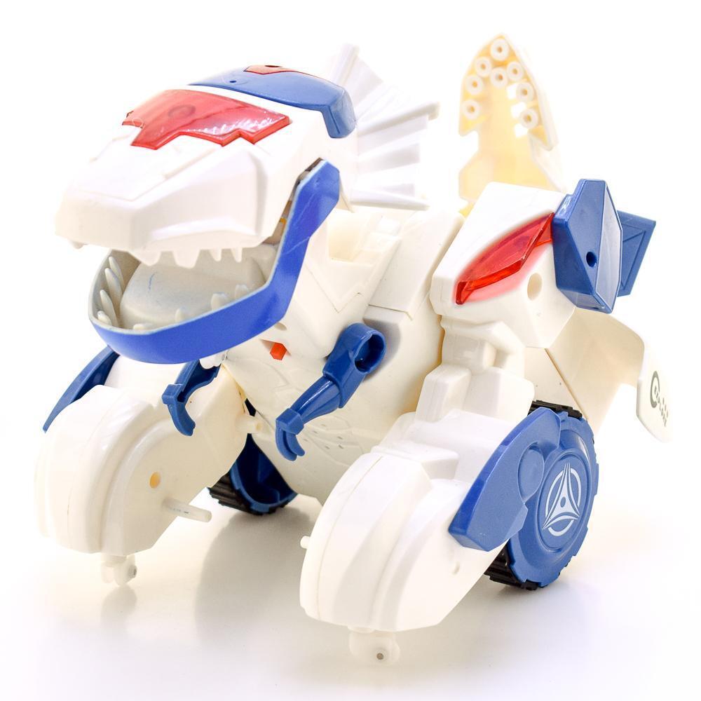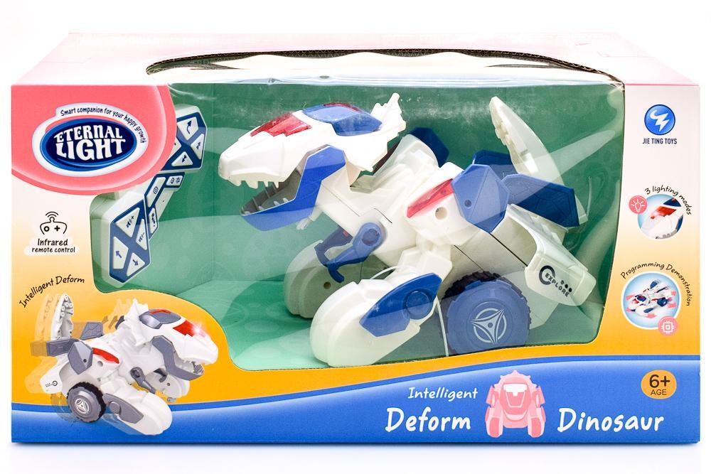 Динозавр трансформер с пультом, свет/звук, пластик, белый/синий