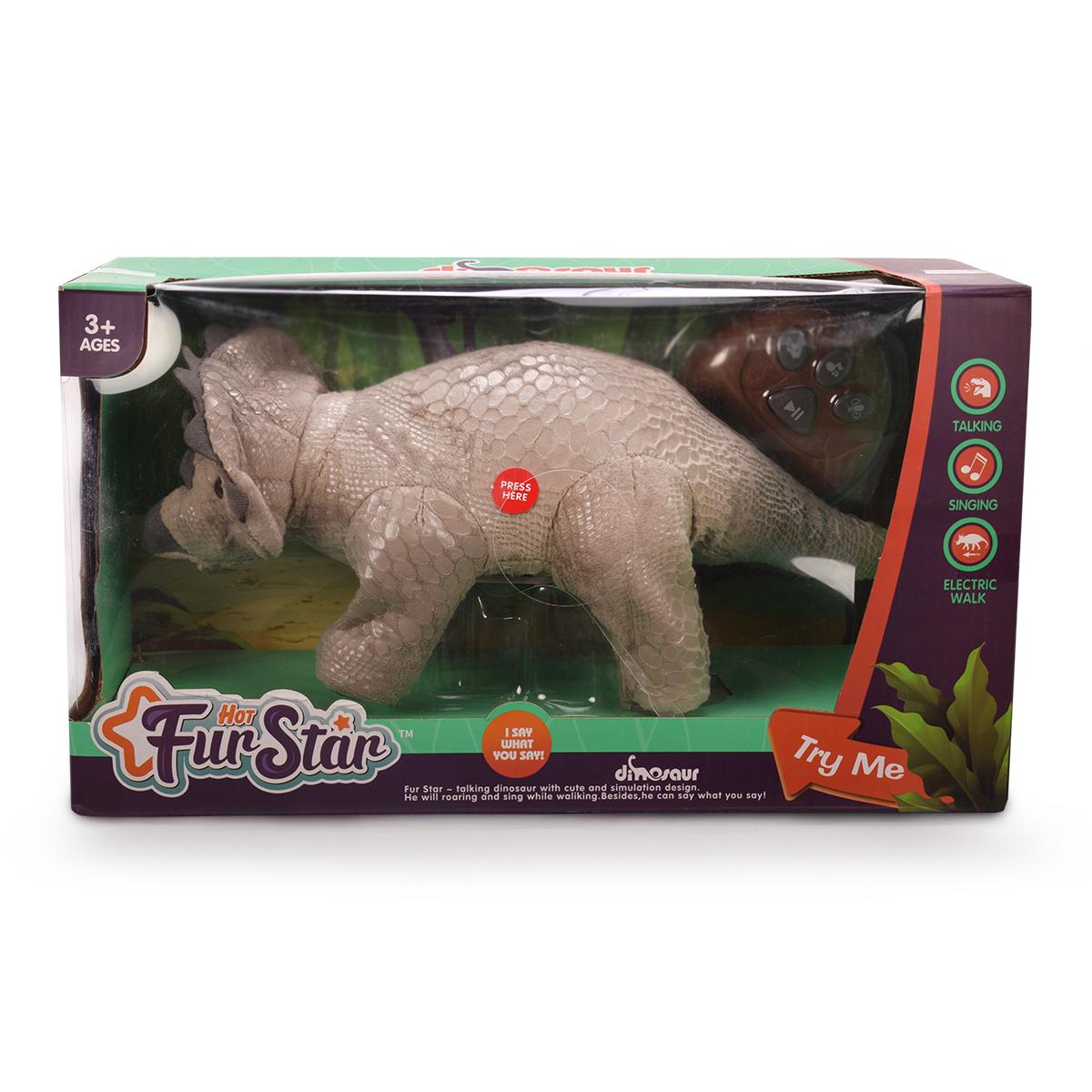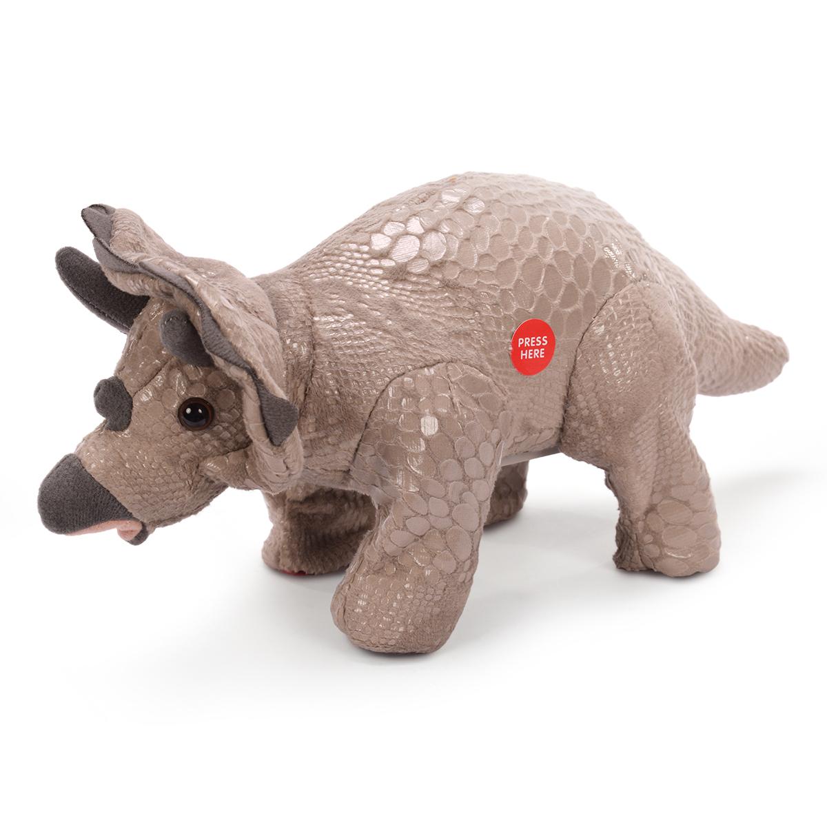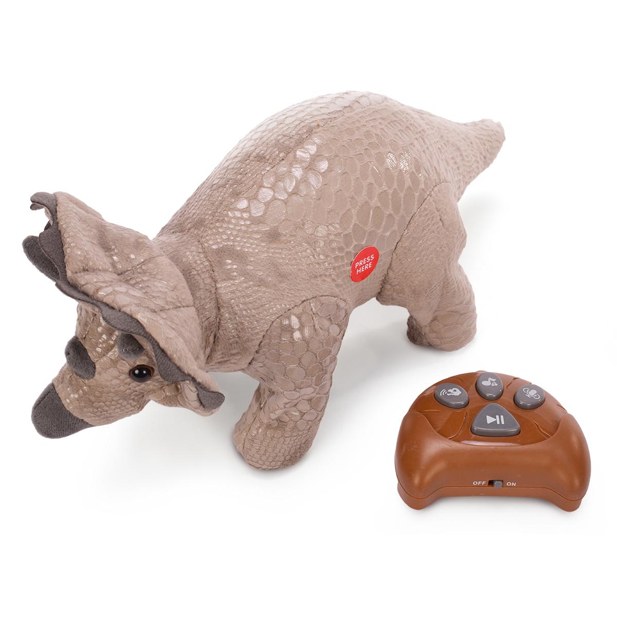 Дополнительные преимущества включают легкий доступ к управлению через наклейки «PRESS HERE» и привлекательный дизайн, имитирующий реального динозавра с деталями в виде рогов и текстурой кожи. Эта игрушка подойдет детям от 3 лет, развивая активность, фантазию и мелкую моторику, делая каждую игру увлекательной и безопасной.
