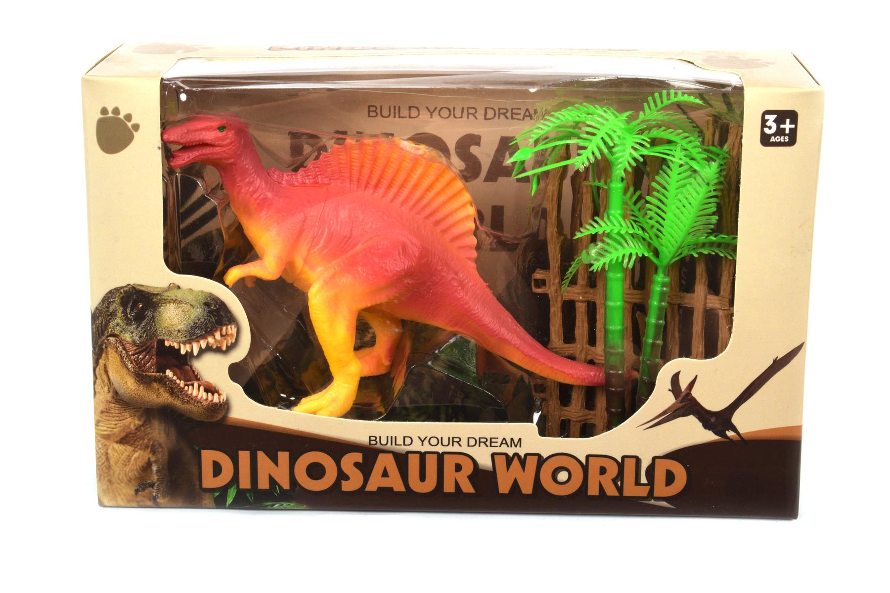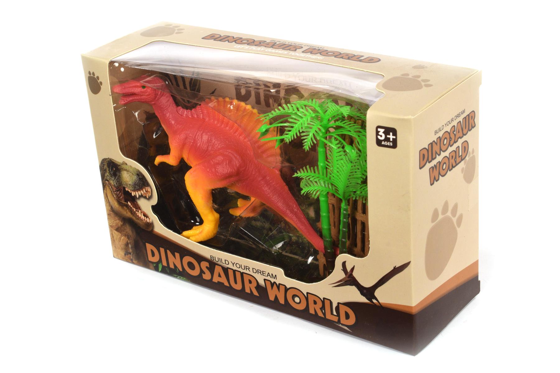 Игрушка динозавр спинозавр с аксессуарами, красный/желтый, фигурка для детей от 3 лет, Dinosaur World