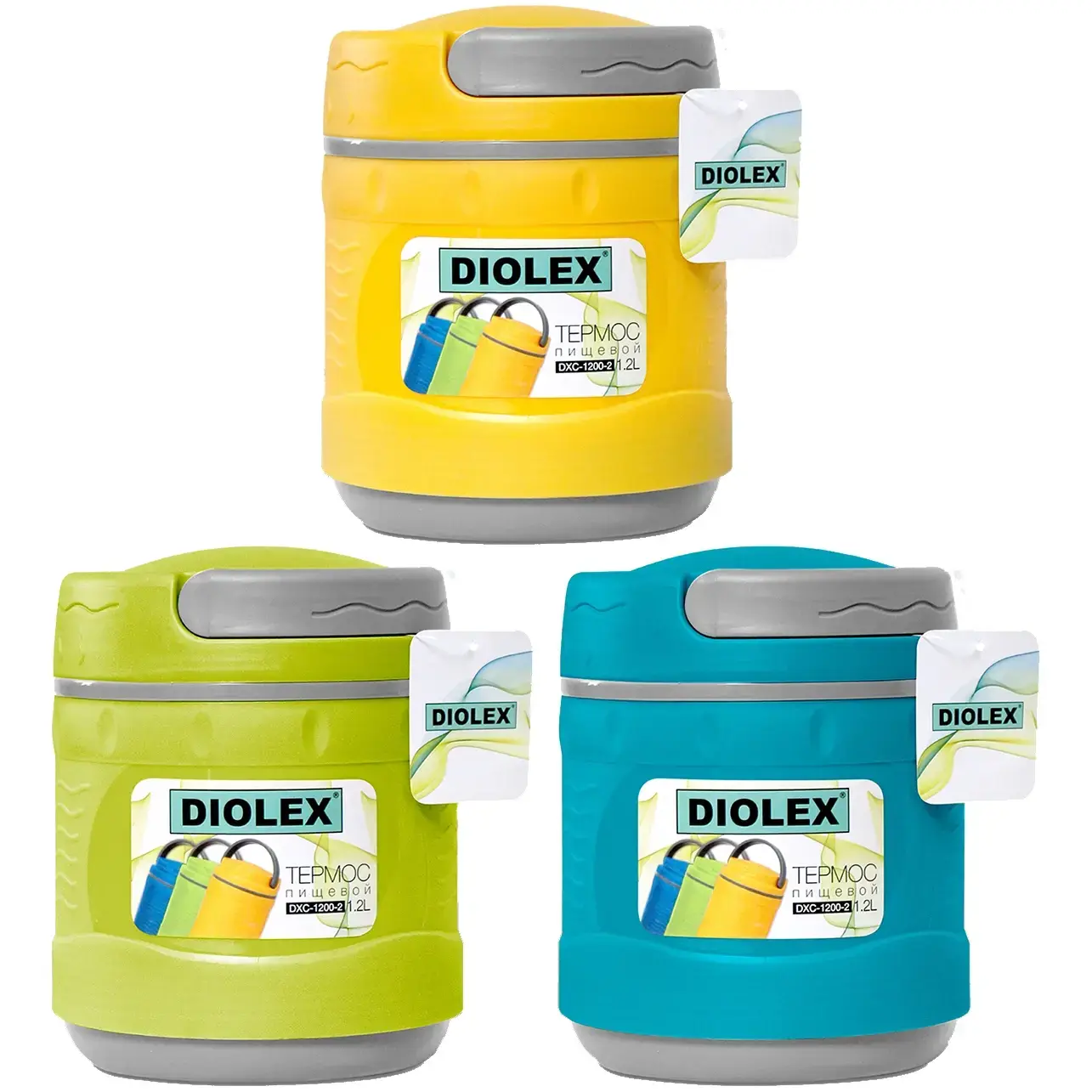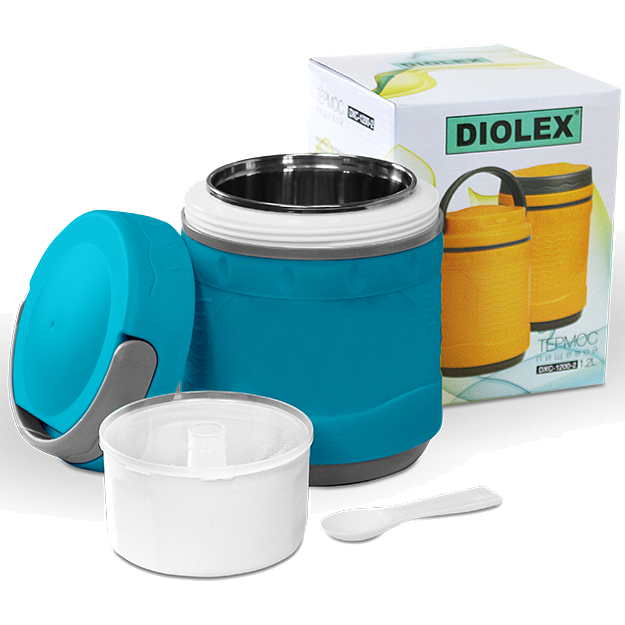 Термос пищевой с контейнером и ложкой, колба из нержавеющей стали, 1.2 л, 3 цвета: желтый, зеленый, голубой