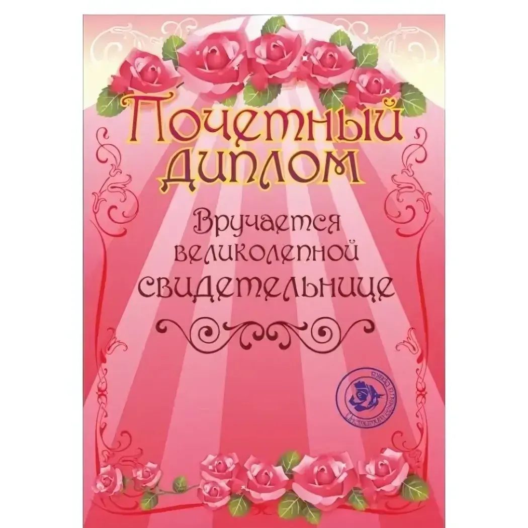 Этот диплом станет идеальным способом выразить признательность вашей свидетельнице за помощь в организации самого важного дня.