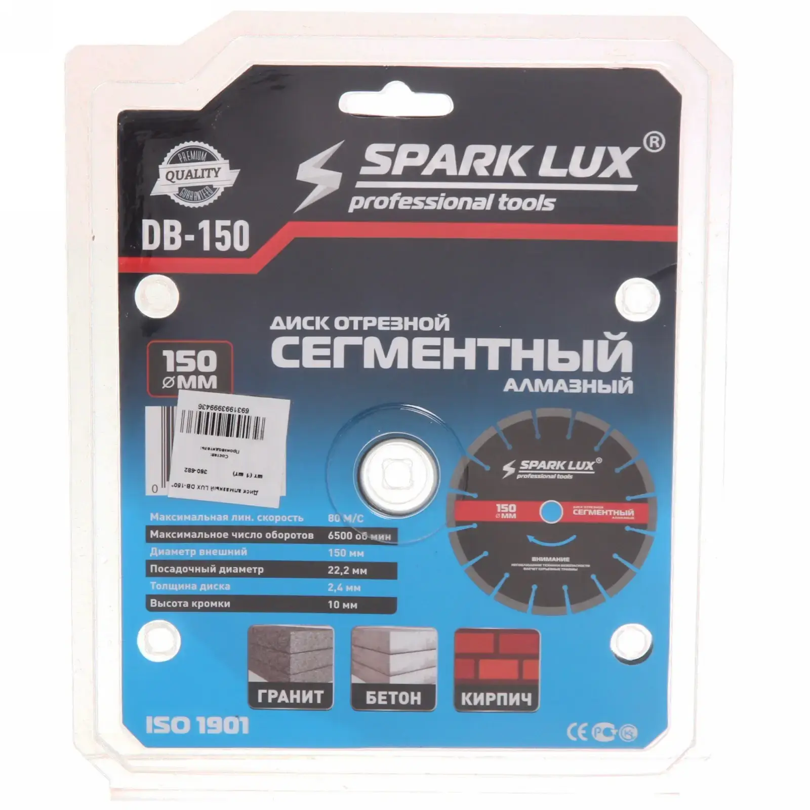 Алмазный отрезной диск «Spark Lux DB-150», диаметр 150 мм, посадка 22.2 мм, для бетона, кирпича