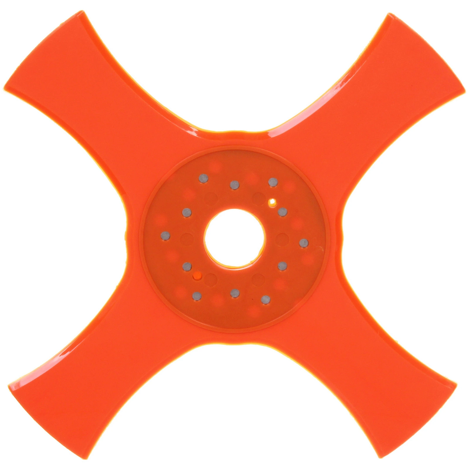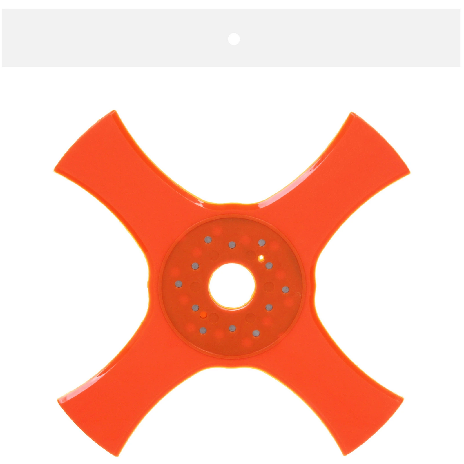Диск имеет размеры 235x235x3.5 мм и центральное отверстие для стандартного крепления на триммер. Яркий оранжевый цвет делает инструмент хорошо заметным при хранении и использовании. Компактная и лёгкая конструкция не создаёт излишней нагрузки на вал триммера.