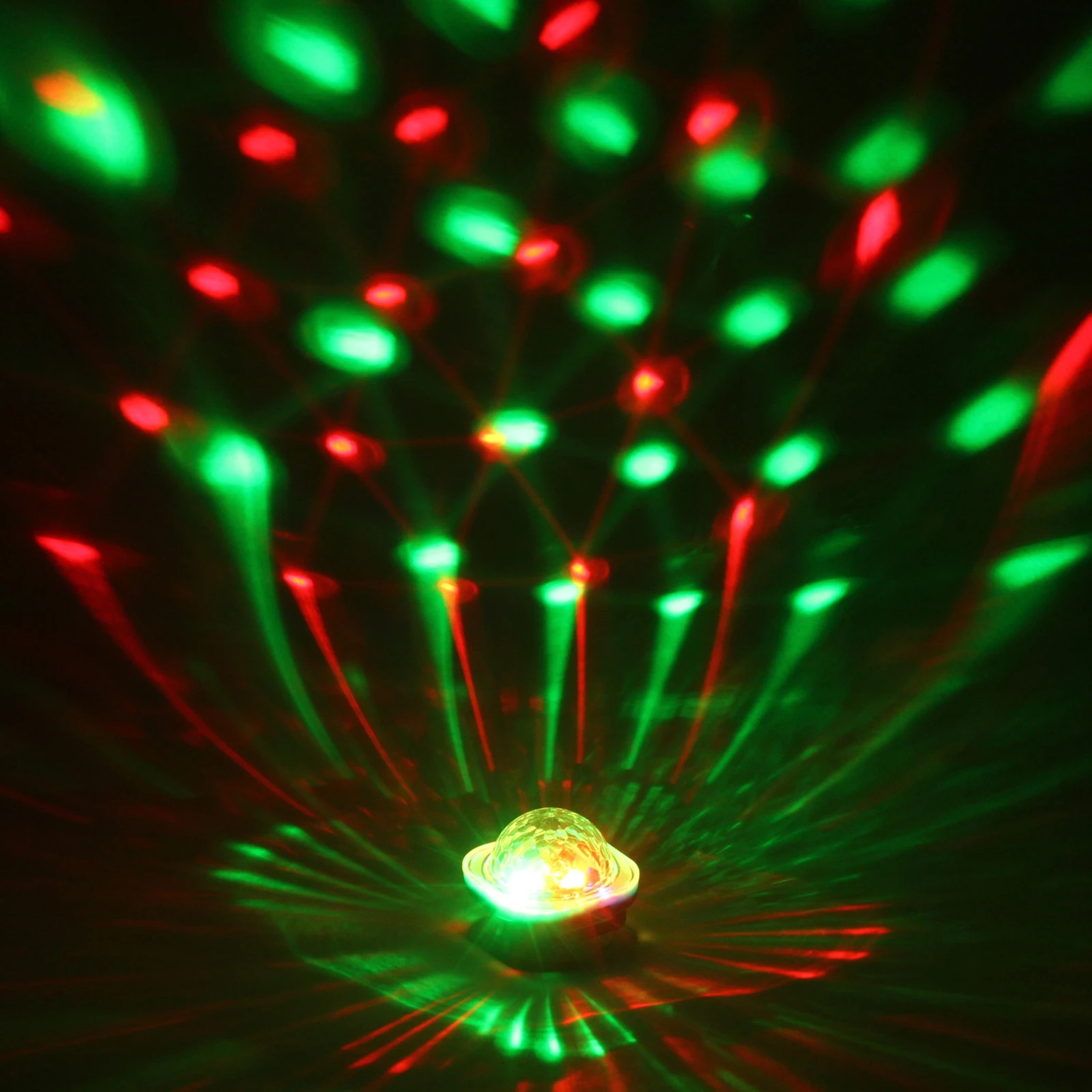 - Встроенный датчик реагирует на музыку: эффекты подстраиваются под ритм