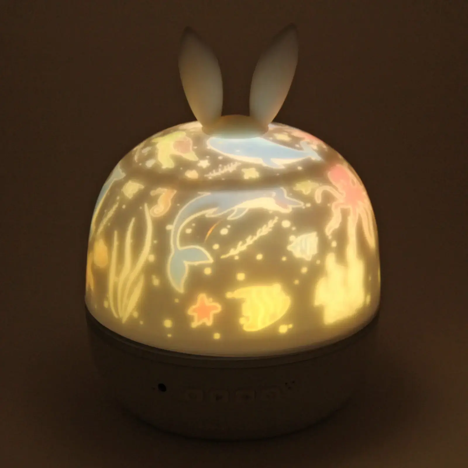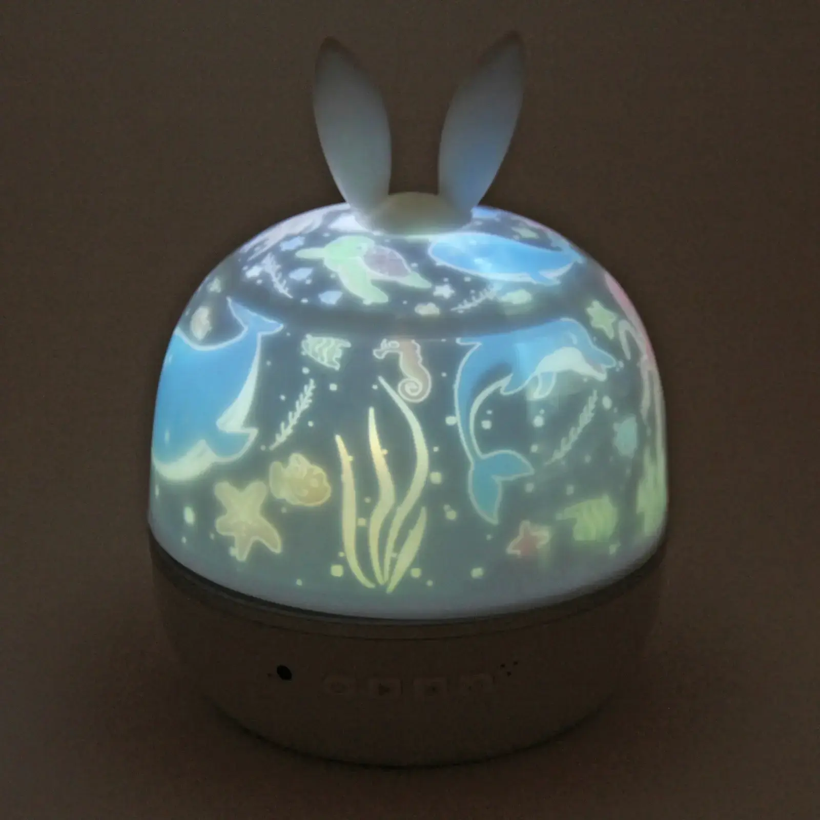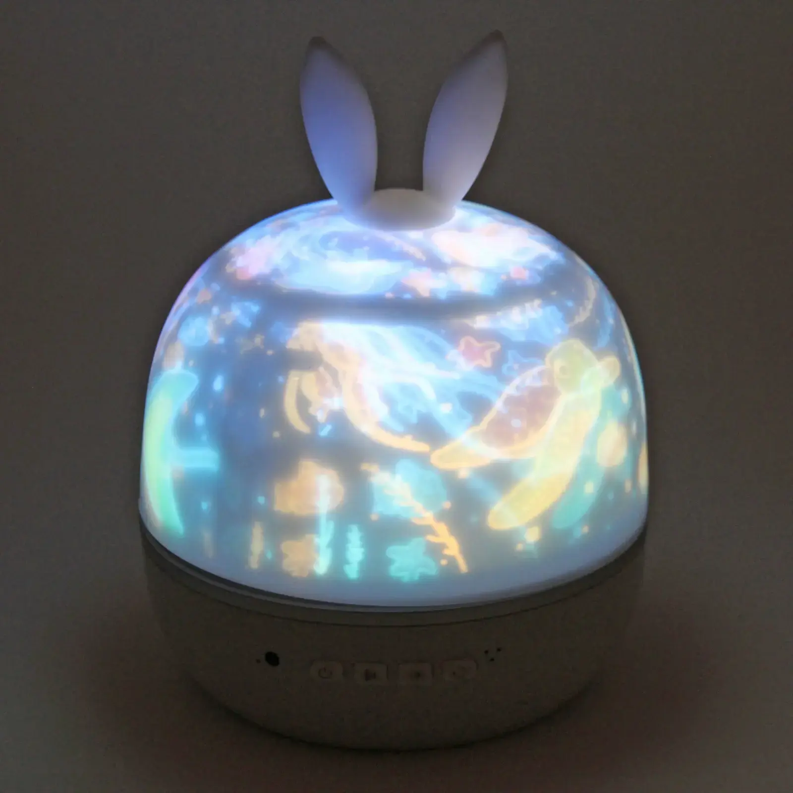 Диско-шар «Fantasy - Зайка» — это идеальный способ добавить яркие эмоции и уют в ваш дом. С его помощью вы сможете создать уникальную атмосферу для праздников, вечеринок или просто для уютного вечера с семьей. Благодаря проекциям морских существ и звезд, этот светильник станет настоящим украшением любого интерьера.