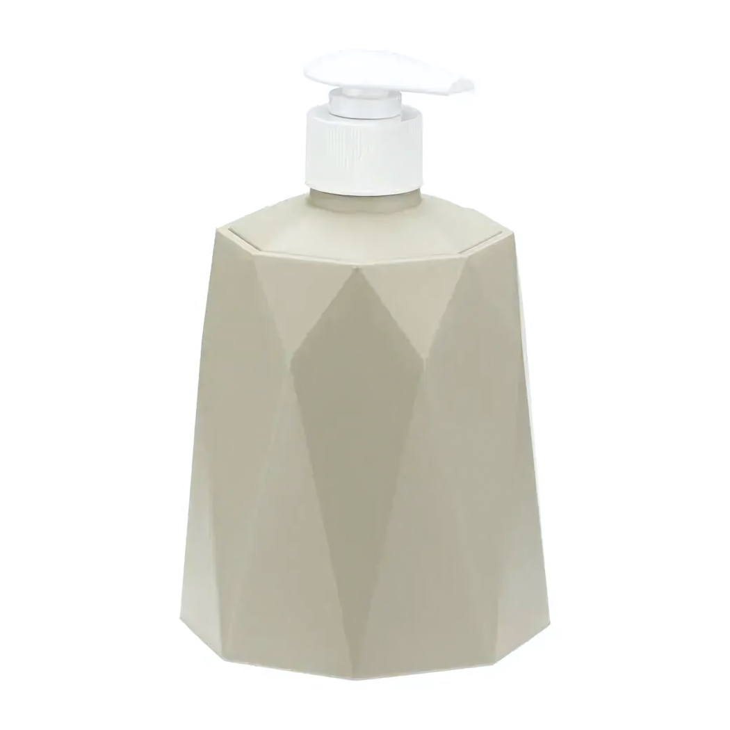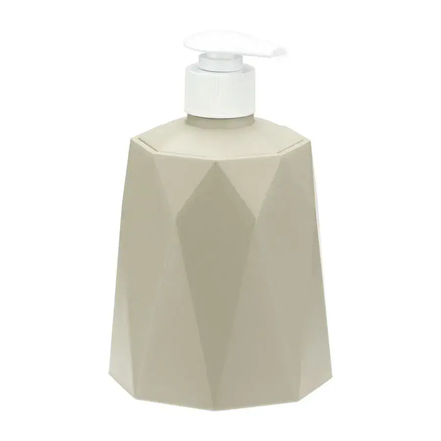 Геометрическая форма с ребрами жесткости повышает устойчивость емкости. Короткий носик насоса позволяет точно дозировать содержимое без разбрызгивания. Герметичная крышка предотвращает испарение жидкости и случайное нажатие.