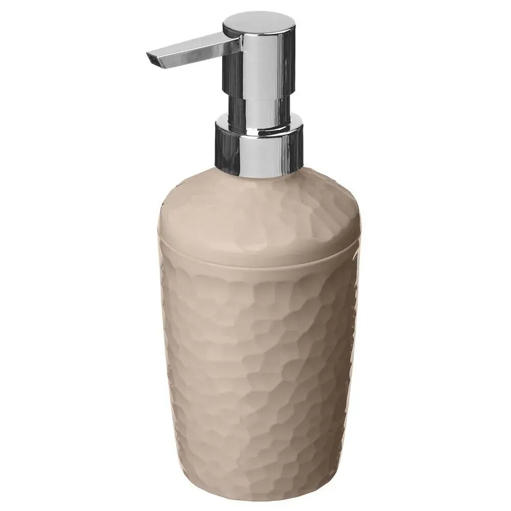 Диспенсер для мыла «Tule» сочетает элегантный дизайн и практичность, делая использование в ванной или на кухне комфортным. Светло-бежевый корпус с рельефной текстурой и металлический хромированный дозатор добавят интерьеру современный акцент.