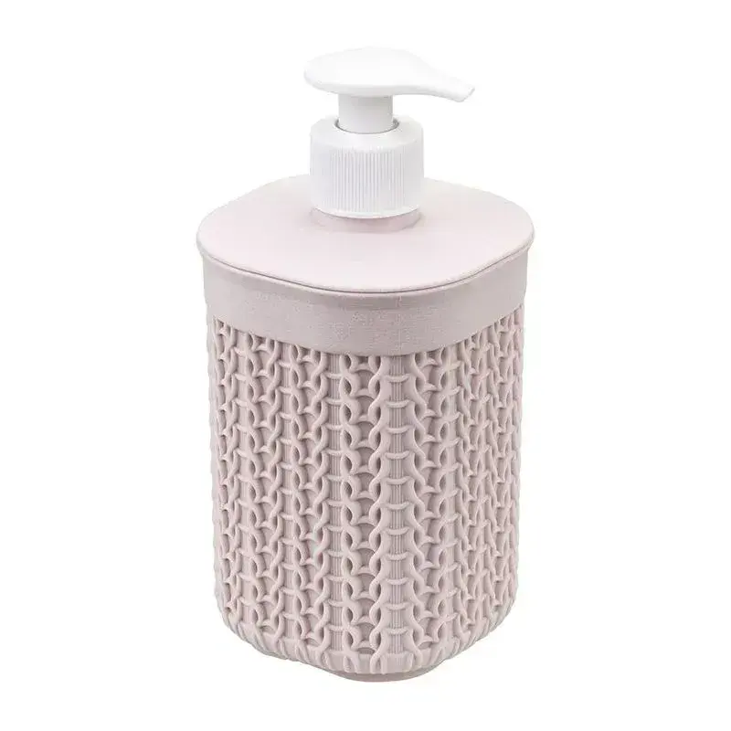 Пластиковый диспенсер с рельефной текстурой «вязание» сочетает функциональность и эстетику. Нежный узор «чайная роза» создаёт уютную атмосферу, а эргономичный дозатор обеспечивает точную подачу средства без подтёков.