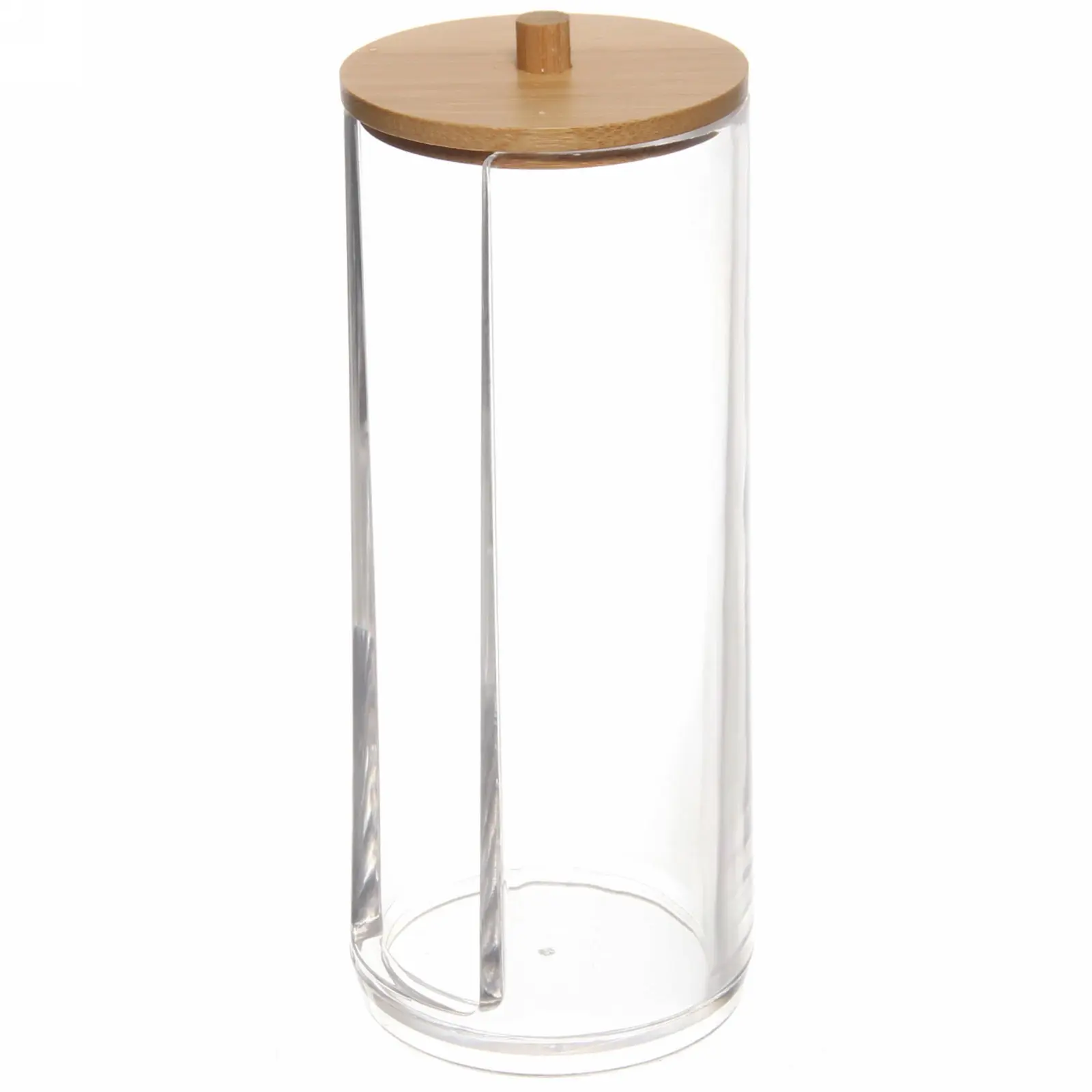 Диспенсер «БРАМИНГЕМ» для ватных дисков с бамбуковой крышкой, прозрачный пластик, 18х7 см, гигиеничное хранение