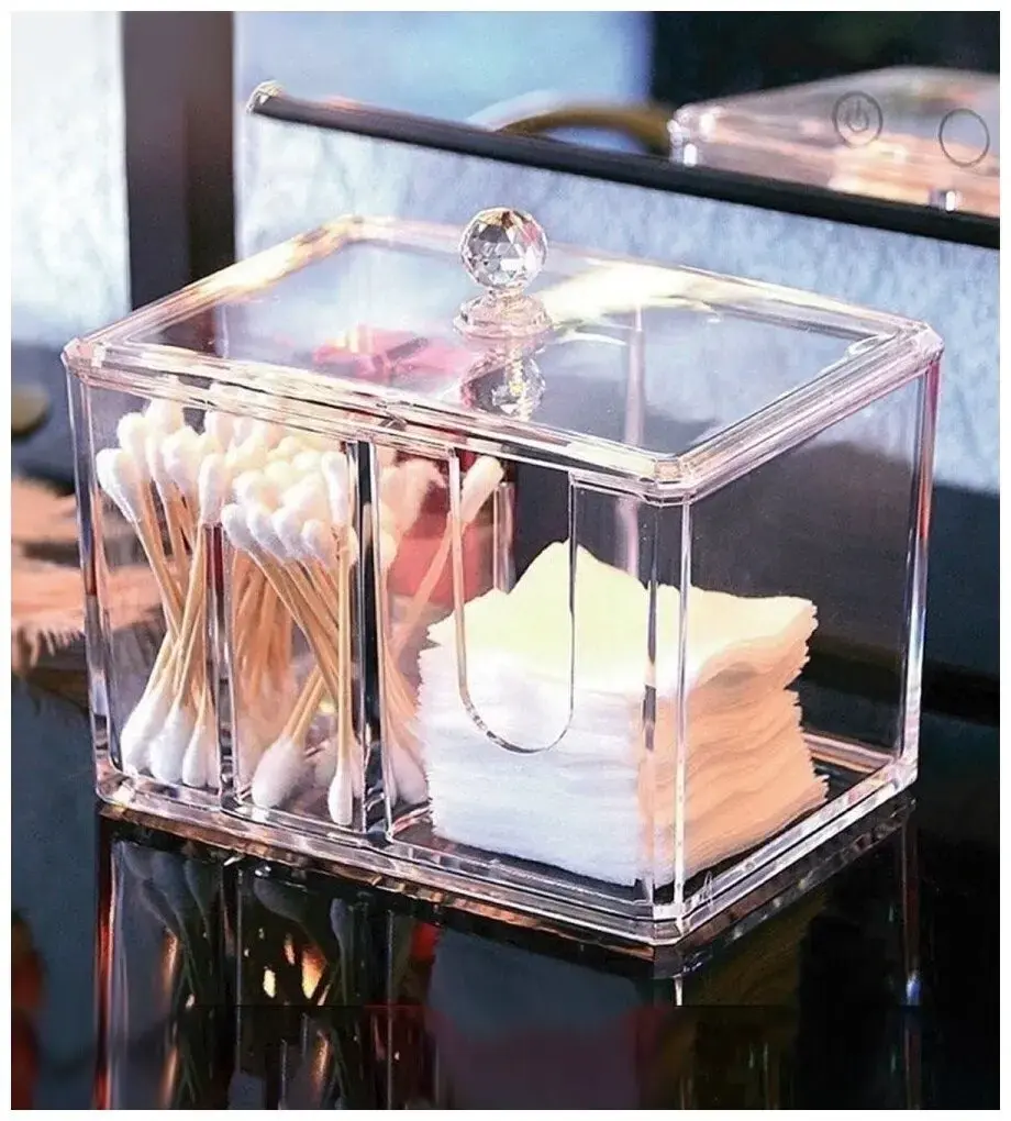 Диспенсер подходит для хранения ватных дисков, палочек и других мелких предметов, что делает его универсальным помощником в организации вашего пространства. Он идеально впишется как в ванную комнату, так и на туалетный столик, обеспечивая легкий доступ к необходимым принадлежностям. Благодаря прозрачному материалу вы всегда будете видеть, когда нужно пополнить запасы.