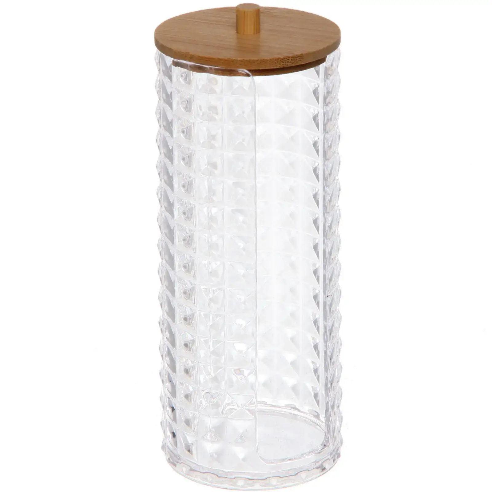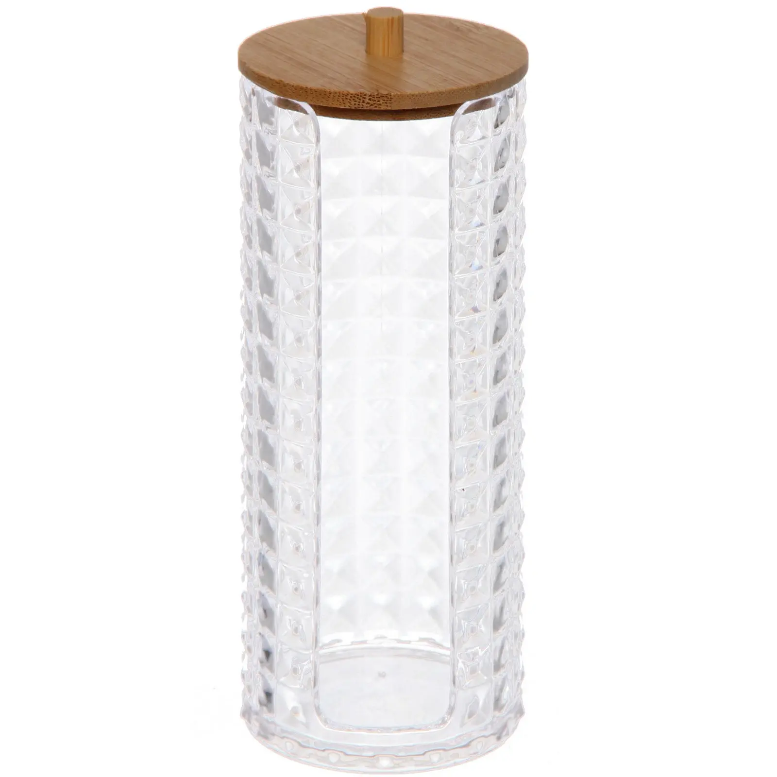Диспенсер для ватных дисков 'КАПЕЛЛА', бамбуковая крышка, прозрачный, 7.3*18.5см