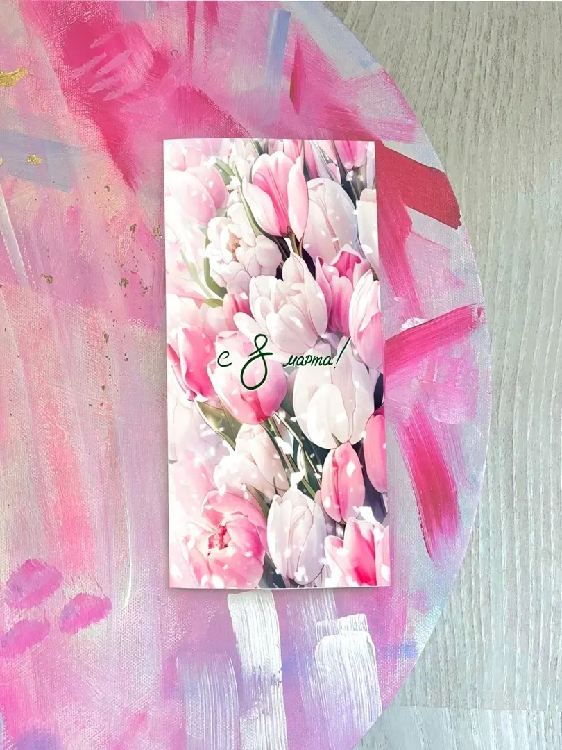 Дизайнерская открытка «8 марта» с розовыми тюльпанами