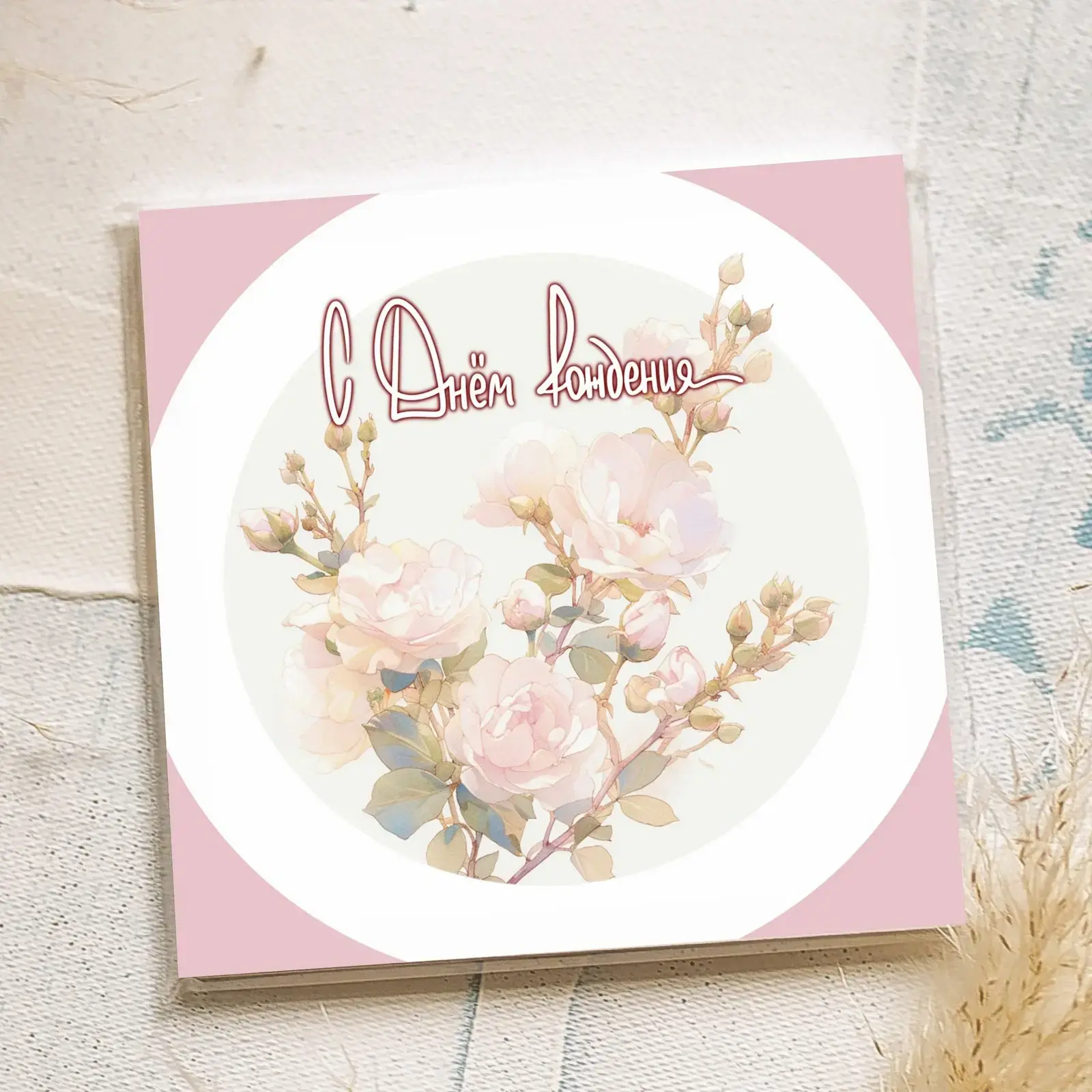 Подарите своим близким радость и тепло с помощью этой уникальной открытки, выполненной на высококачественной дизайнерской бумаге. Каждая открытка — это не просто поздравление, а настоящее произведение искусства, которое станет прекрасным дополнением к любому подарку. Эмоциональный крючок в виде нежных розовых цветов и трогательного текста сделает ваш подарок незабываемым.