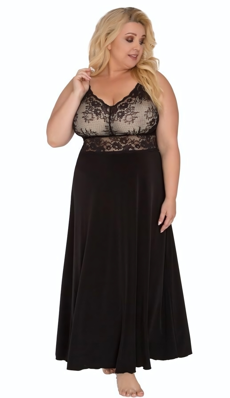Сорочка домашняя длинная с ажурным лифом, черная, размер L, микрофибра/эластан, регулируемые бретели