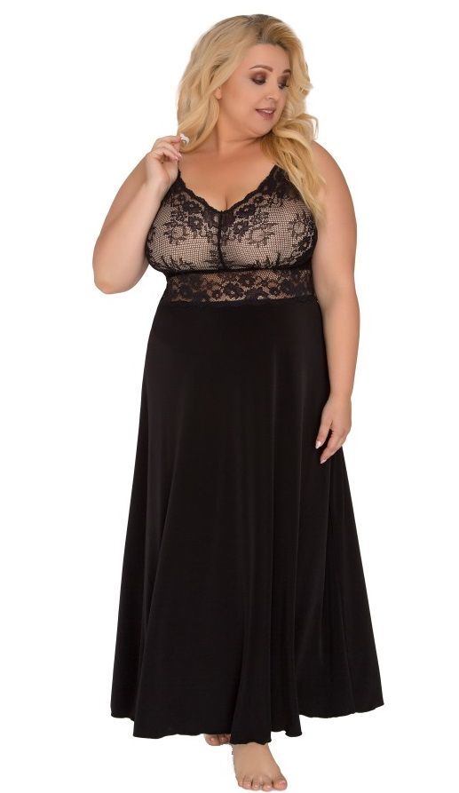 Сорочка представлена в черном цвете и размере XXXL, что делает её подходящей для женщин с различными фигурами. Материал: 85% полиамид, 15% эластан. Эта модель произведена в Польше, что гарантирует высокое качество и внимание к деталям.