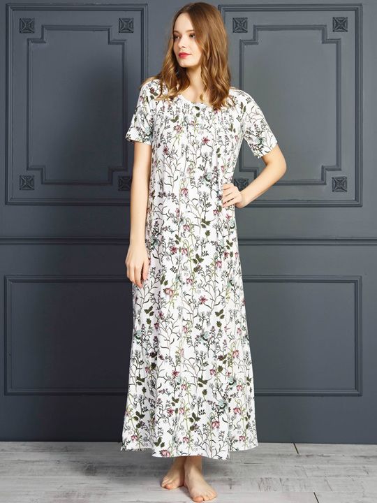 - Универсальный дизайн: Классическая длина в пол и нейтральный белый фон с мелким цветочным рисунком делают платье уместным в различных ситуациях. Принт из мелких цветков и веточек в пастельных тонах выглядит изящно и ненавязчиво.