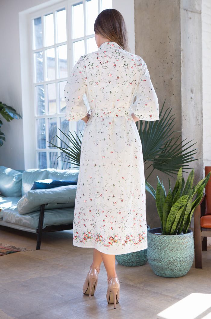 Халат Daisy из нежного хлопка с цветочным принтом создан для тех, кто ценит гармонию стиля и практичности. Свободный силуэт средней длины подчеркнёт вашу естественную красоту, а натуральный материал обеспечит идеальный микроклимат для кожи в любое время года.