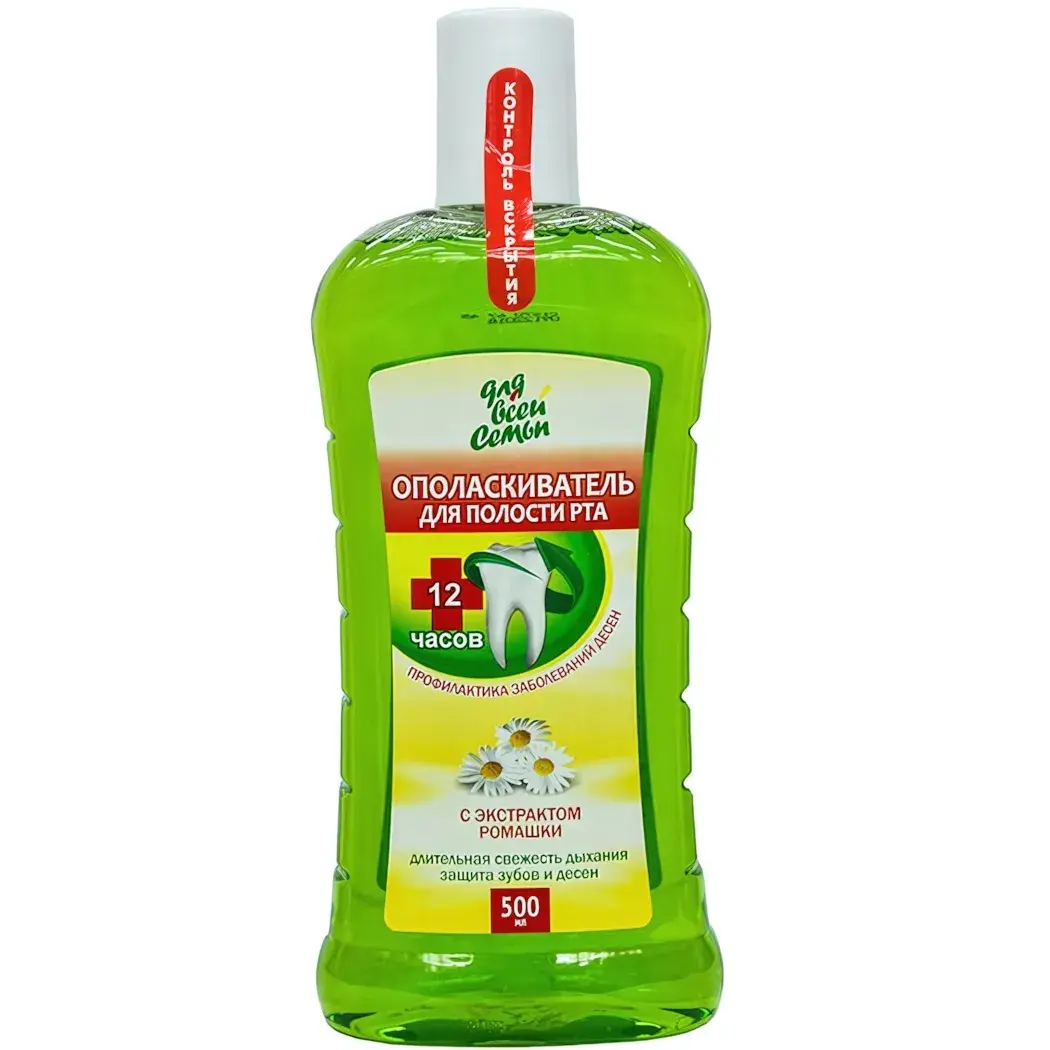 Подарите своей семье здоровье и свежесть дыхания с ополаскивателем для полости рта с экстрактом ромашки. Этот продукт создан для всей семьи и обеспечивает длительное действие до 12 часов, что делает его идеальным выбором для ежедневного использования. Заботьтесь о здоровье зубов и дёсен, не выходя из дома!