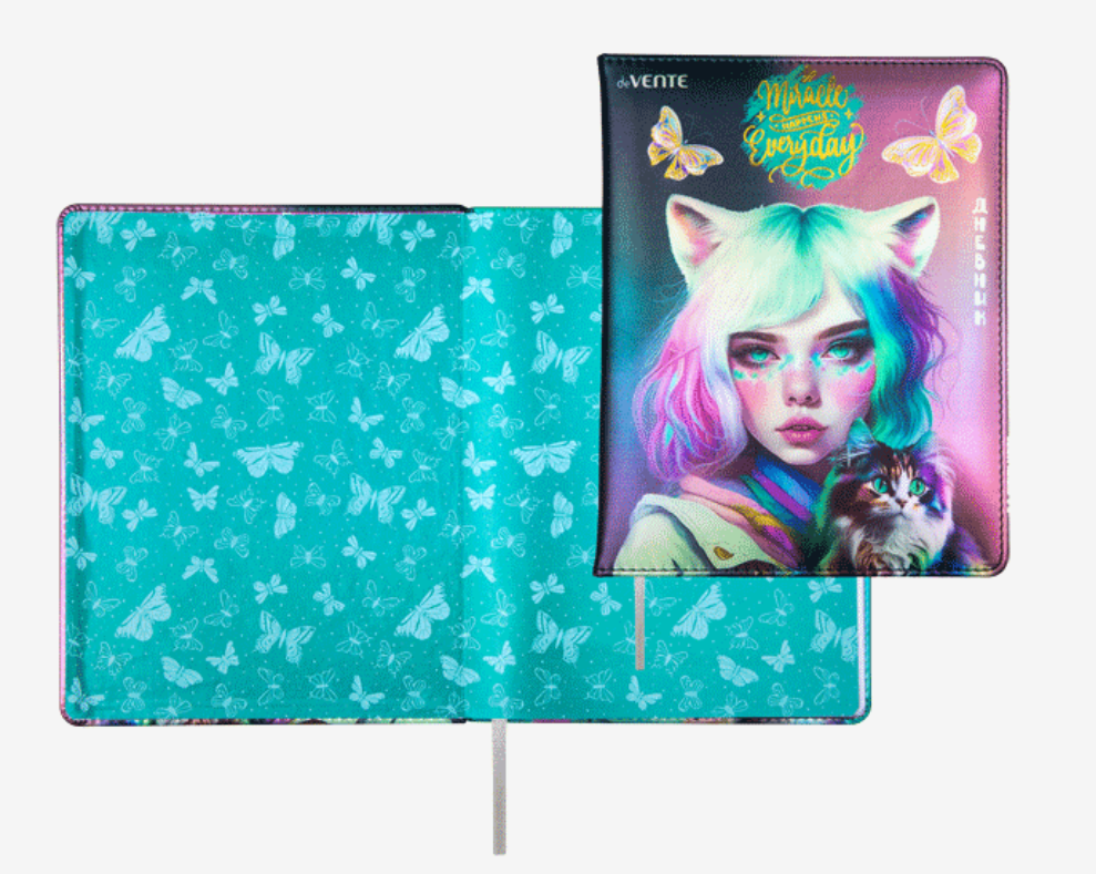 Этот дневник станет вашим надежным помощником в организации мыслей, планов и воспоминаний. Стильный дизайн с изображением девушки и кошки на обложке подчеркнет вашу индивидуальность.
