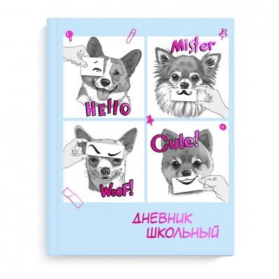 Дизайн обложки выполнен в нежном светло-голубом цвете с композицией из четырех сюжетов с разными породами собак и забавными надписями на английском языке: "Hello", "Mister", "Woof!" и "Cute!". Внутренний блок имеет четкую линовку и качественную печать в одну краску, что снижает нагрузку на зрение при чтении. Этот дневник станет не только инструментом для планирования, но и любимым аксессуаром, подчеркивающим индивидуальность ребенка.